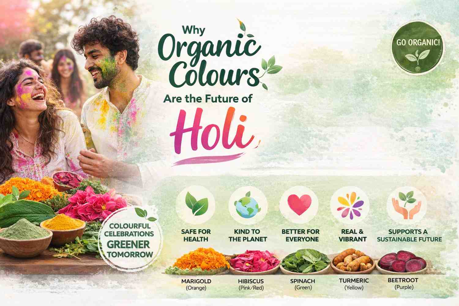 Switching to Organic Holi colours is the best way to ensure safety while celebrating. These colours are made from natural ingredients like turmeric, flowers, and herbs, making them eco-friendly and non-toxic. Benefits include: