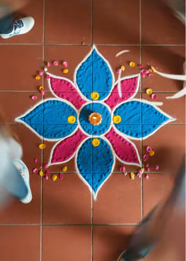 Rangoli is more than an art form; it’s a symbol of positive energy. Every pattern drawn brings with it warmth, joy, and an open invitation for prosperity. As families gather to create these designs, it becomes a shared moment of creativity and togetherness.